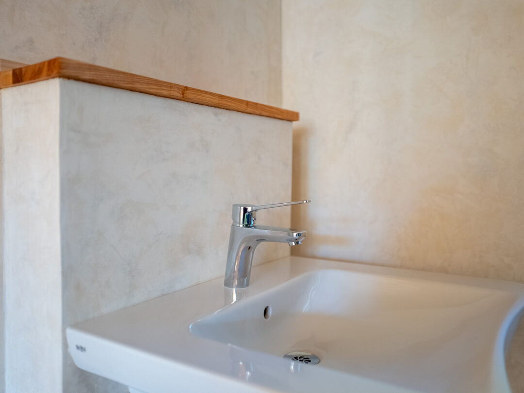- Lehmputz (Weißer Edelputz) in hellem Elfenbein-Ton